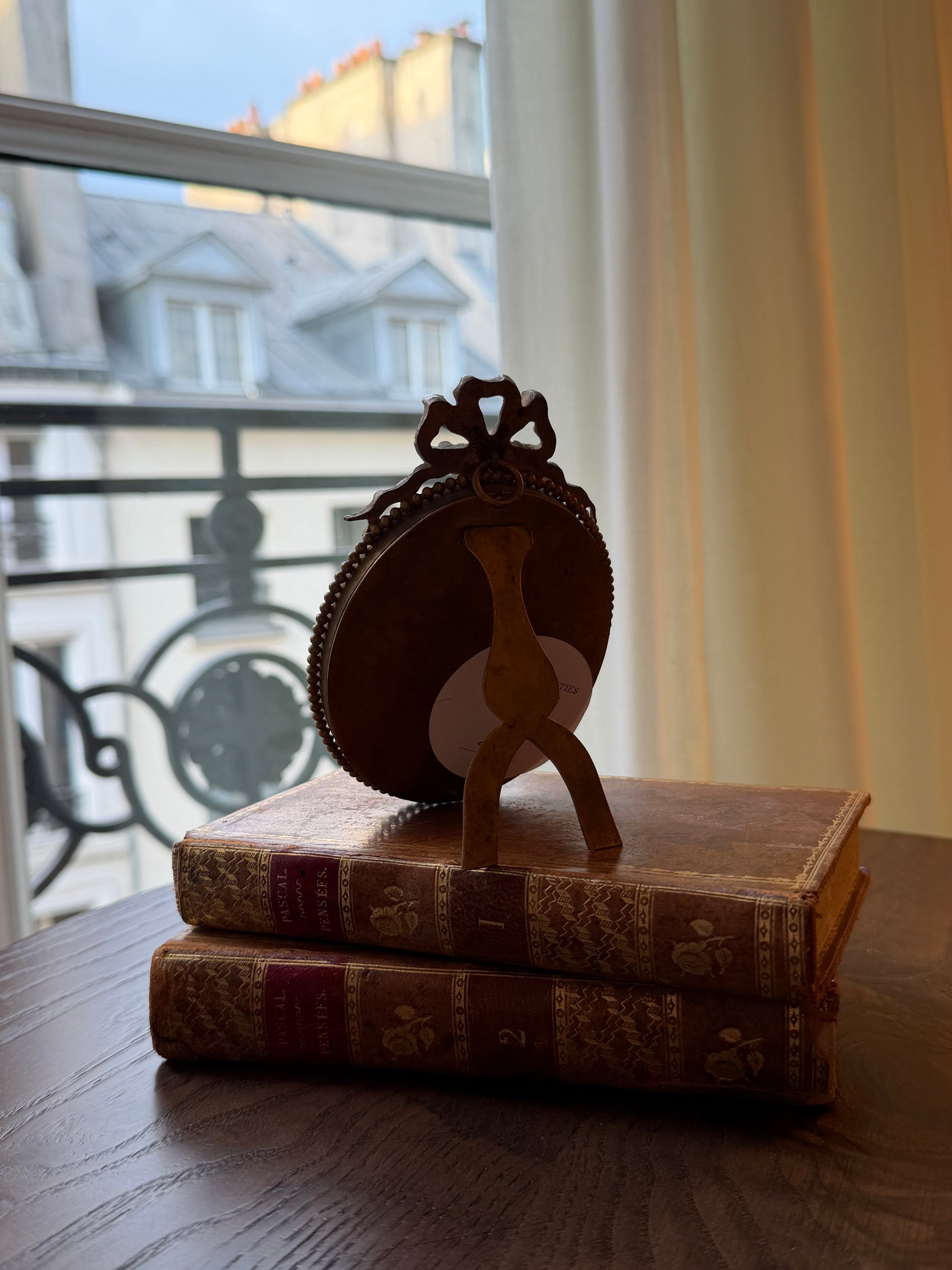 French Antique Leather Bound Faux Book Tantalus with Decanter & 4 Glasses